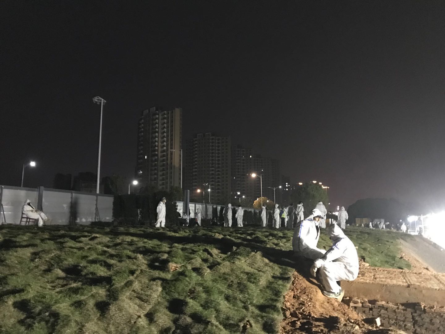 ? ? ? 根據(jù)施工任務(wù)開始組織現(xiàn)場工作,來到火神山第一天,在公司領(lǐng)導(dǎo)的統(tǒng)一指揮下,我們有序完成了火神山醫(yī)院的初步測量及平整場地工作。夜深回到隔離酒店后,發(fā)現(xiàn)爸媽還在等著和我視頻,盡管還是不斷重復(fù)著對我的關(guān)心,但是看著他們臉上的表情已不像昨天那樣充滿著擔(dān)憂,更多的是支持我,讓我注意休息,等我抗疫平安回來。到后面工期更緊,為縮短任務(wù)時間,我們整個團(tuán)隊(duì)一起爭分奪秒地進(jìn)行一系列工序,晝夜不停地堅守在施工現(xiàn)場;為不影響施工進(jìn)度,哪怕是暴風(fēng)雨來襲,大家也依舊沒有停歇,鉚足干勁,我們彼此加油打氣:“就是再累再困也要堅持到底”。最終在團(tuán)隊(duì)共同的努力下,我們按時保質(zhì)完成此了火神山園區(qū)24000平方綠化任務(wù)。