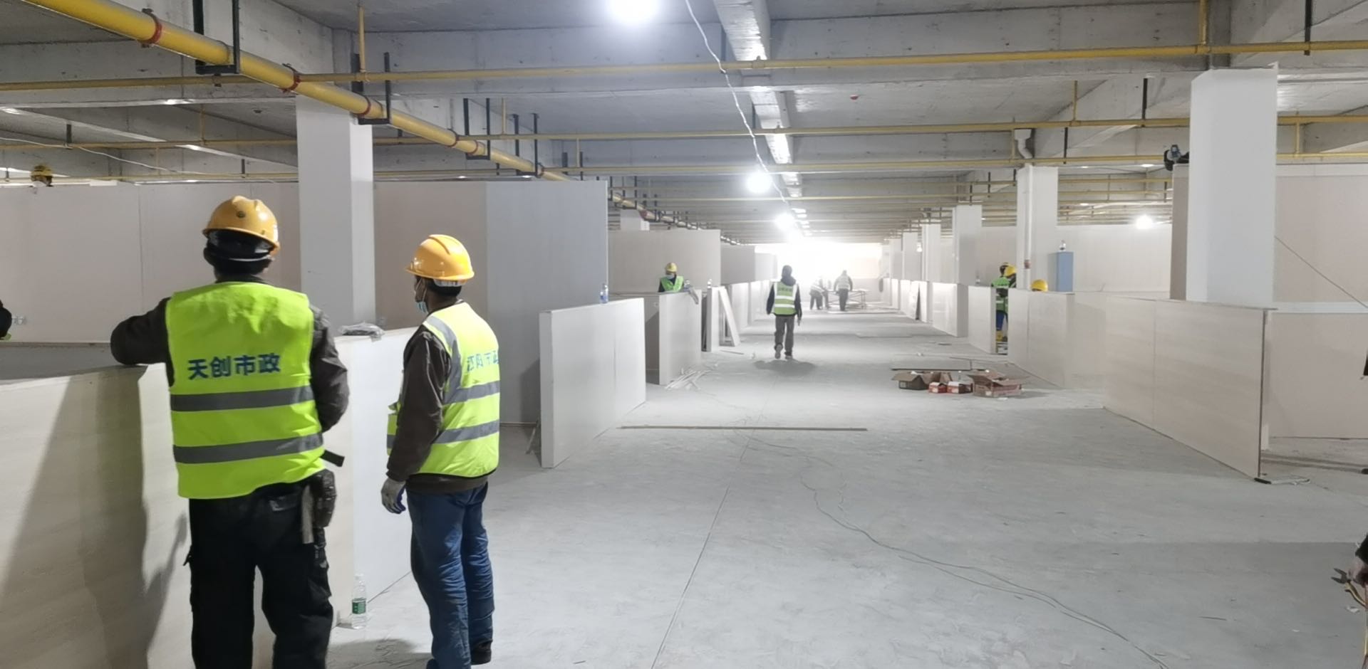 ? ? ? 截止2月20日凌晨3點(diǎn),第二、三階段完工,22層樓三區(qū)兩通道隔斷施工任務(wù)全部完成。2月20日上午,經(jīng)院方檢查合格后,兩棟樓正式交付驗(yàn)收。后續(xù)將陸續(xù)接收更多新冠肺炎患者。