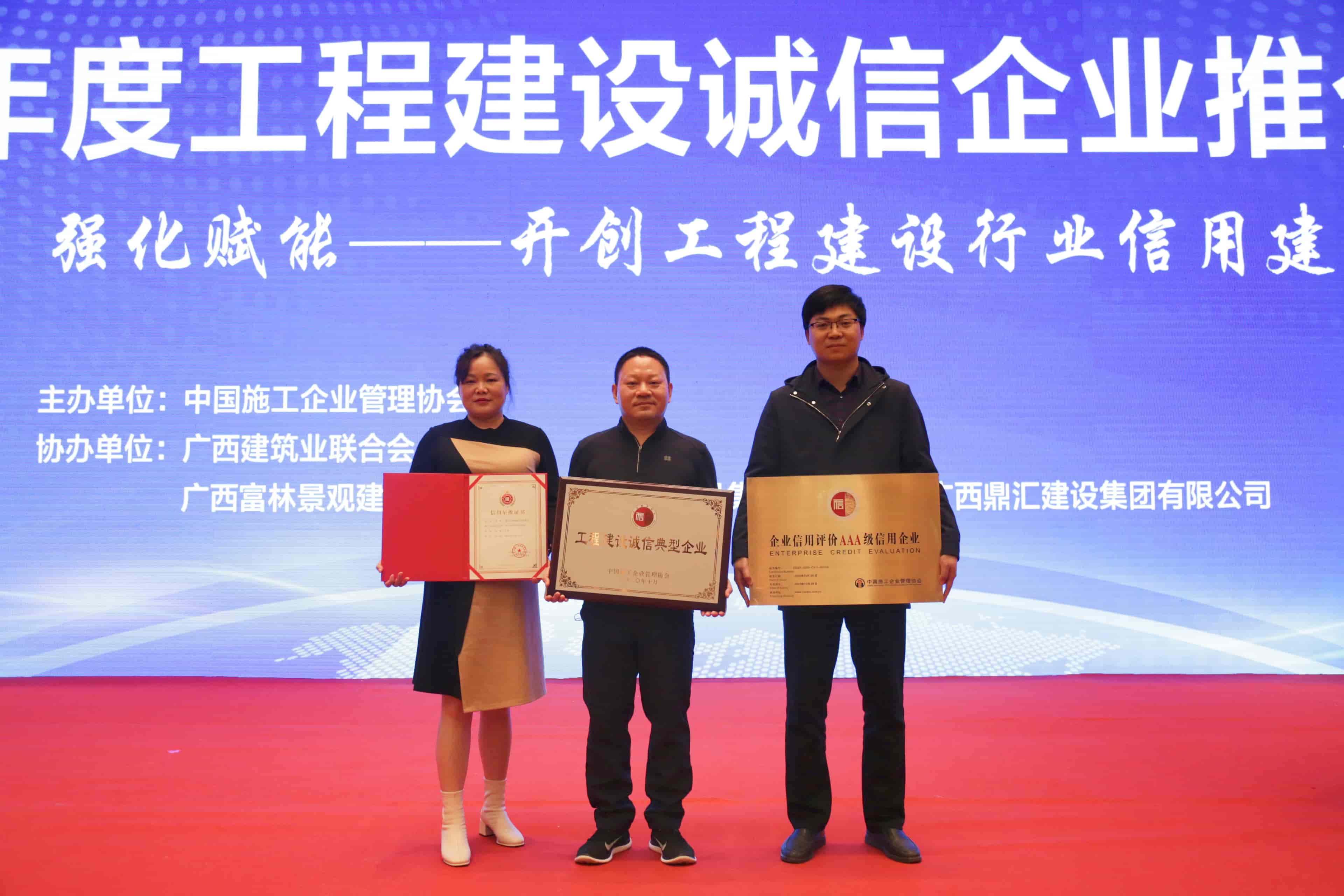 ? ? ? 12月4日,中國施工企業管理協會在廣西南寧召開“2020年度工程建設誠信企業推介大會”。漢陽市政、漢陽市政天創公司、漢陽市政博宏公司榮獲“2020年度工程建設誠信典型企業”“信用星級企業”“AAA信用等級企業”3項榮譽,為集團企業信用獎項開創了新篇章。?
