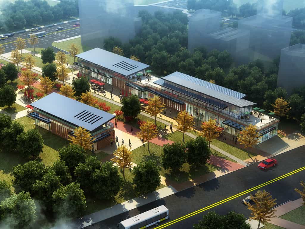 ? ? ? 長廊中端是鐵路文創基地。中段的四美塘附近,11節火車車廂和車頭整齊排列。據悉,除了建筑物,“留守”的車廂將作為餐車、商店抑或展覽展示區,獨具鐵路特色。道路兩旁,不僅有高大筆直的銀杏,還有紫薇、杜鵑等各種植物。路燈燈桿也倍具特色,5G WIFI接口、音箱、視頻監控等多功能設備均融于一體。