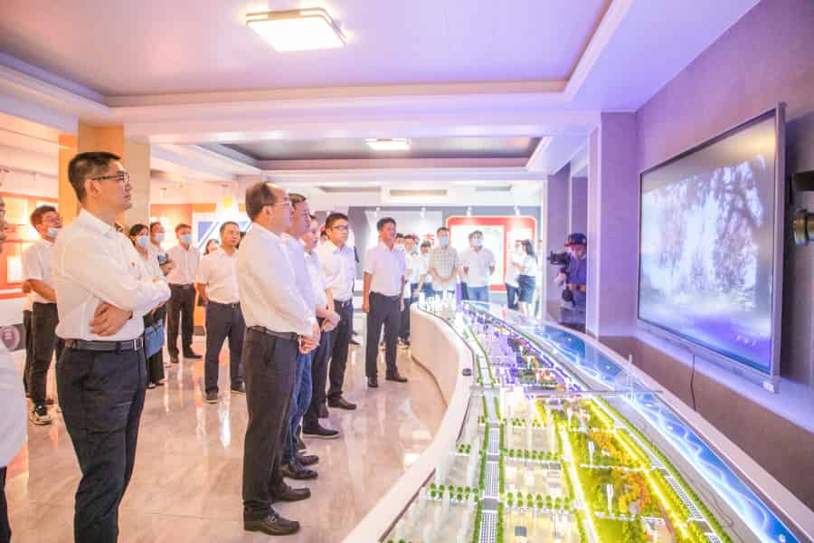 參會(huì)人員參觀武昌生態(tài)文化長(zhǎng)廊項(xiàng)目黨員教育服務(wù)廳