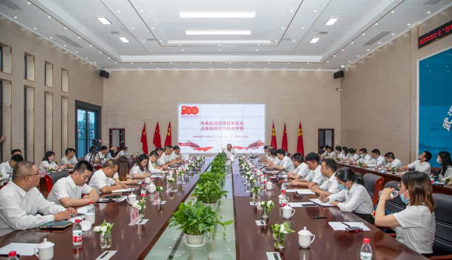 ? ? ? 在隨后舉行的“百年黨史·紅色傳承”主題黨課上,武漢市城投集團(tuán)公司副總經(jīng)理、鐵投公司黨委書(shū)記、董事長(zhǎng)汪國(guó)圣以“傳承武漢鐵路百年榮光,點(diǎn)亮鐵投賦能城市夢(mèng)想”為主題,為大家講述了中國(guó)鐵路與武漢鐵路的發(fā)展史,講述了百年來(lái)武漢的“鐵軍精神”,汪國(guó)圣表示,武漢的每一次騰飛都與鐵路有關(guān),鐵軍精神永垂不朽,武漢鐵軍將“以臻心,鑄未來(lái)。”