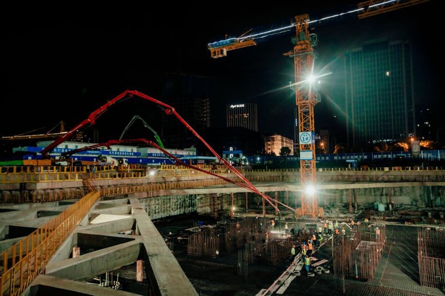 凌晨,在中南科研設計中心項目的施工現場,燈火通明,工人們正在有序工作。