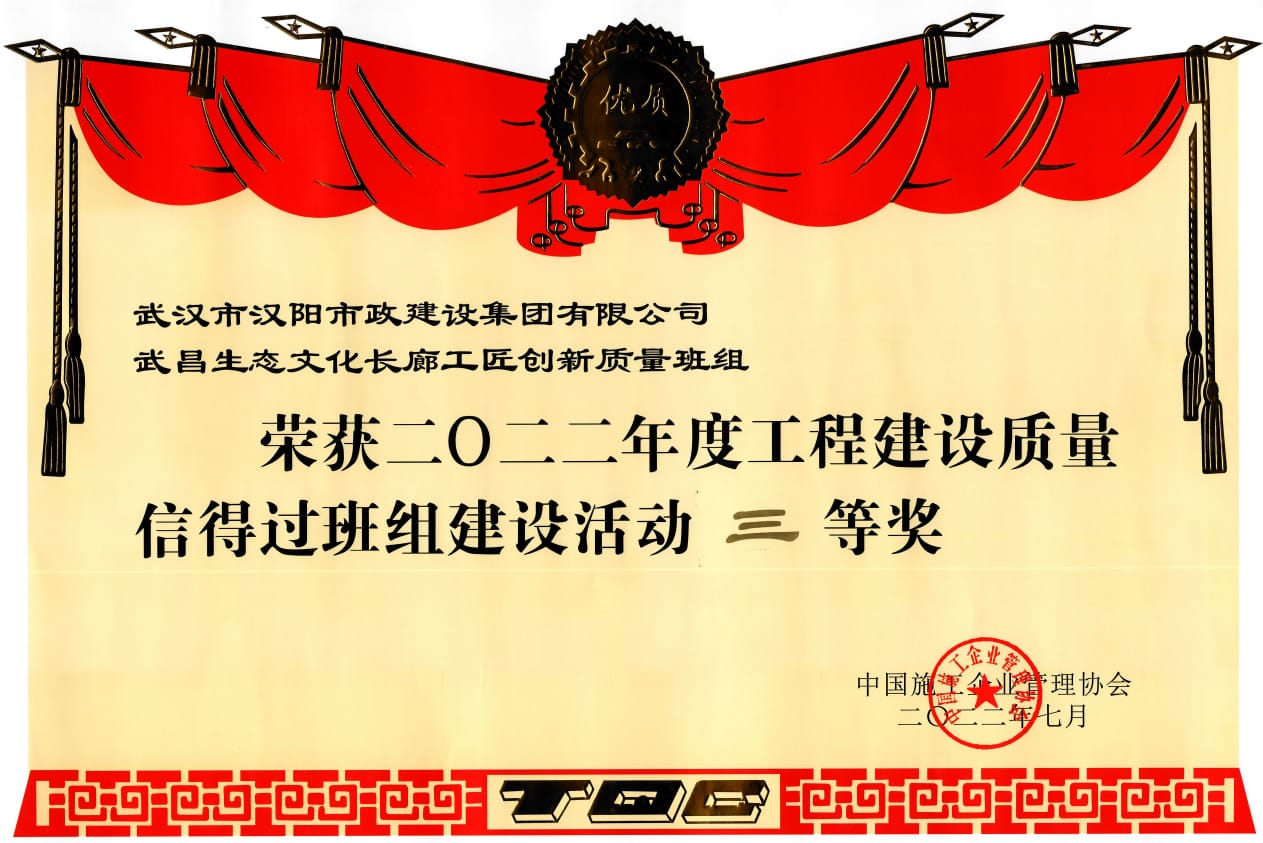 近日,中國施工企業管理協會公布了2022年工程建設優秀質量信得過班組名單,漢陽市政首次參加此類活動,申報的3個成果均獲得獎項。其中,三公司“武漢博宏建設集團有限公司裝修班組”和七公司當陽沮河一橋實干建設班組榮獲二等班組獎項;二公司武昌生態文化長廊工匠創新質量班組”榮獲三等班組獎項