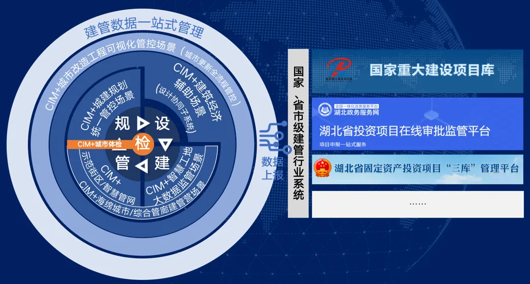 項(xiàng)目建設(shè)圍繞城建規(guī)劃、設(shè)計(jì)、建設(shè)、管理4個(gè)階段構(gòu)建CIM+智慧應(yīng)用,形成具備城建特色的CIM+正向循環(huán)生態(tài)圈,為城市更新建設(shè)提供全流程管控抓手。